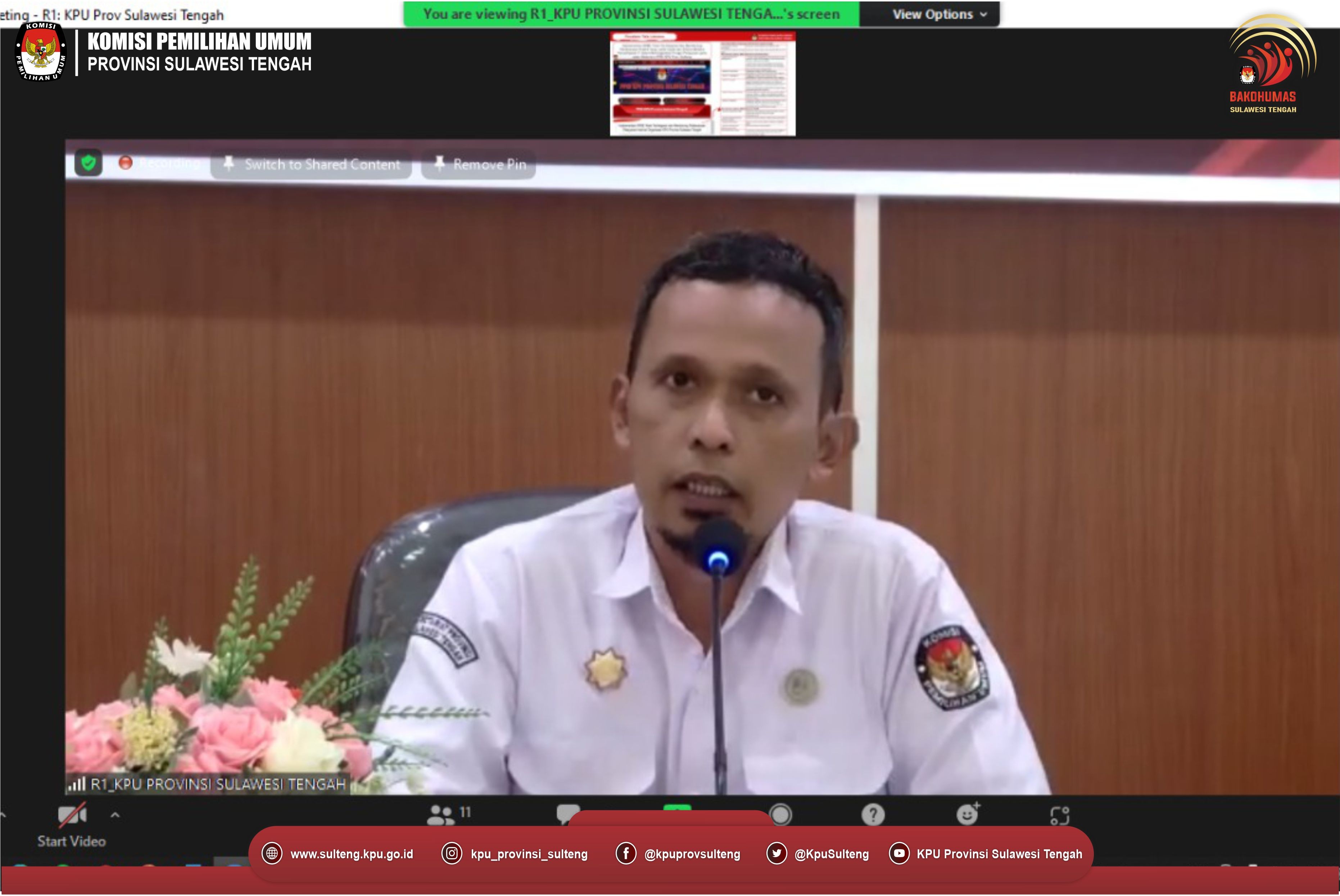 Sekretaris KPU Sulteng, Mohammad Taufik memaparkan implementasi SAKIP dan Pelaksanaan Reformasi Birokrasi dilingkup KPU Sulteng dalam kegiatan “Evaluasi Implementasi Sistem Akuntabilitas Kinerja Instansi Pemerintah (SAKIP) dan Pelaksanaan Reformasi Birokrasi KPU Tahun 2022” bersama Tim Evaluator Kementerian Pemberdayaan Aparatur Negara dan Reformasi Birokrasi (KemenPAN RB) secara daring, Kamis (22/9/2022).