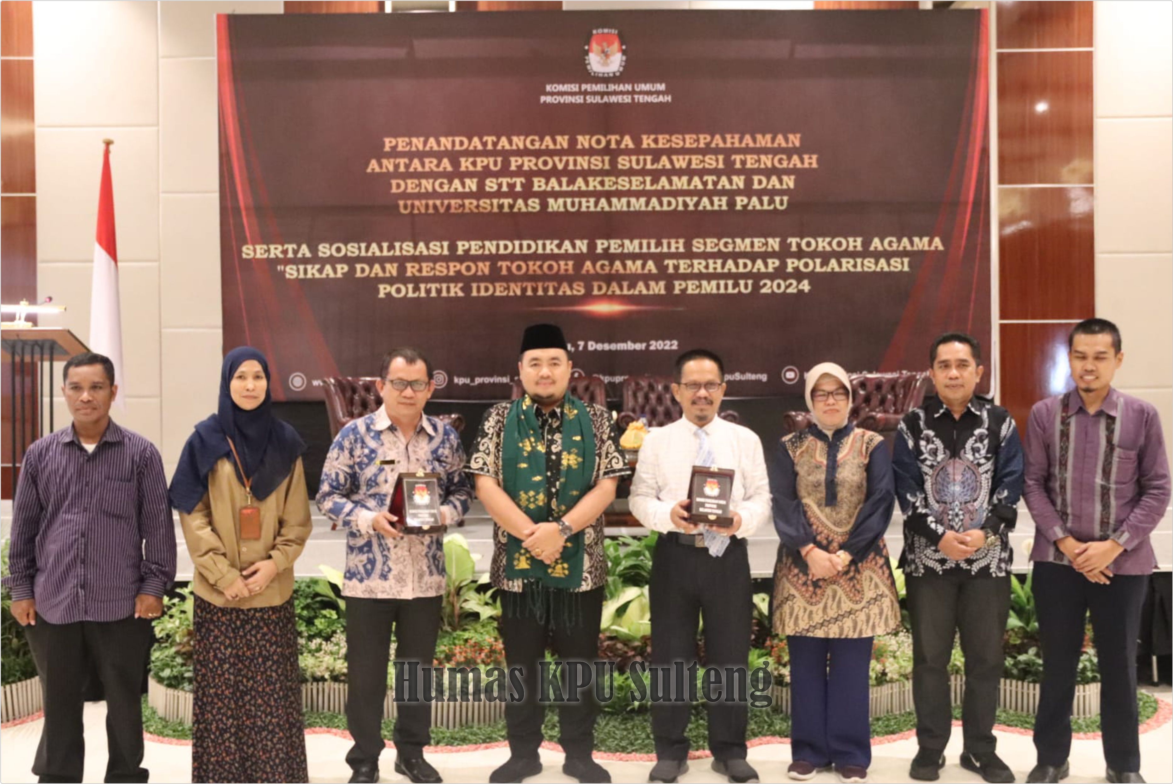 Palu, Sulteng.kpu.go.id – Komisi Pemilihan Umum (KPU) Provinsi Sulawesi Tengah (Sulteng) melaksanakan kegiatan Penandatanganan Nota Kesepahaman antara KPU Provinsi Sulawesi Tengah dengan Perguruan Tinggi, yakni Universitas Muhammadiyah (Unismuh) Palu dan Sekolah Tinggi Theologi Bala Keselamatan (STT BK) Palu bertempat disalah satu Hotel di Kota Palu, Selasa, (7/12/2022) Penandatanganan Nota Kesepahaman tersebut dalam rangka peningkatan Partisipasi Pemilih, adapun ruang lingkup kegiatan tersebut antara lain Sosialisasi dan pendidikan pemilih dalam rangka peningkatan partisipasi pemilih khususnya pada Perguruan Tinggi, Mengedukasi dan memperkuat literasi sadar Pemilu, untuk menyikapi rawan timbulnya hoax, ujaran kebencian, dan politisasi SARA pada Pemilu dan Pemilihan, Memfasilitasi pelaksanaan kuliah umum dan kelas Pemilu bagi Mahasiswa, Bekerjasama dalam kegiatan Akademik dan pengabdian masyarakat seperti Praktek Kerja Lapangan, sesuai dengan kebutuhan masing-masing pihak, Melakukan riset dan publikasi informasi kepemiluan, Memfasilitasi pelaksanaan seleksi Penyelenggara Ad Hock, PPK, PPS dan KPPS dalam Pemilu dan Pemilihan sesuai kebutuhan. Dalam kegiatan tersebut juga dirangkaikan dengan kegiatan sosialisasi Pendidikan Pemilih dengan segmen tokoh Agama, Turut menjadi narasumber, Mochammad Afifuddin, Ketua Divisi Hukum dan Pengawasan KPU RI, Prof. Dr. KH. Lukman S Tahir. MAg, Guru Besar UIN Datokarama Palu dan Sahran Raden, Ketua Divisi Sosialisasi dan Partisipasi Pemilih dan SDM KPU Provinsi Sulawesi Tengah. Adapun peserta dalam kegiatan tersebut adalah Tokoh Agama dari beberapa Organisasi Keagamaan, Tokoh Masyarakat, Lembaga Kemahasiswaan dan Organisasi Kemasyarakatan. Kegiatan Sosialisasi mengusung tema "Sikap dan Respon Tokoh Agama Terhadap Polarisasi Politik Identitas dalam Pemilu 2024", sangat menarik minat para peserta yang hadir dalam kegiatan tersebut. Dalam paparan Materi yang berjudul "Upaya KPU dalam mencegah Politik Identitas, dalam Penyelenggaran Pemilu 2024", afif menjelaskan bahwa mengapa Politik Identitas marak pada Pemilu, yakni isu Politik identitas dianggap sebagai pilihan strategi yang efektif untuk menggiring opini Publik untuk meraih suara, Peran Industri buzzer mengkapitalisasi isu politik identitas, minimnya kampanye yang berorientasi pada program peserta Pemilu, Penggiringan Opini pada Media sosial, kurangnya pendidikan Politik bagi masyarakat. Dalam kesempatan tersebut, beliau juga menjelaskan Upaya KPU dalam mengantisipasi ancaman politik identitas, Yakni, KPU Melakukan Sosialisasi dan Pendidikan Pemilih dengan dua pesan penting yakni sukses Pemilu 2024 dan visi Pemilu sebagai sarana integrasi bangsa, KPU Mengajak seluruh elemen masyarakat (Tokoh Agama, Tokoh adat dan Tokoh Masyarakat), peserta Pemilu, Media, penegak hukum dan unsur pemerintahan untuk bekerjasama menciptakan konstesasi Pemilu yang sehat untuk mencegah Politik Identitas, dalam memberikan pelayanan KPU tidak membeda beda kan peserta pemilu dan pemilih berdasarkan identitas tertentu. Terakhir Afif menjelaskan visi Pemilu 2024, Pemilu dimaknai sebagai sarana Integrasi Bangsa, meningkatkan pengetahuan dan kesadaran pemilih akan penting nya berpartisipasi dalam Pemilu, dan meningkatkan partisipasi masyarakat dalam tiap tahapan Pemilu. (humas kpu sultengd/foto: Yudha/ed diCh)