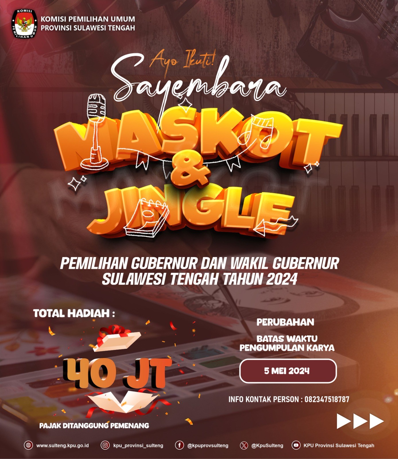 Ada hadiah puluhan juta bagi pemenang terpilih dan pemenang sayembara jingle karyanya akan digunakan sebagai jingle resmi pilkada serentak 2024 daerah Sualwesi Tengah