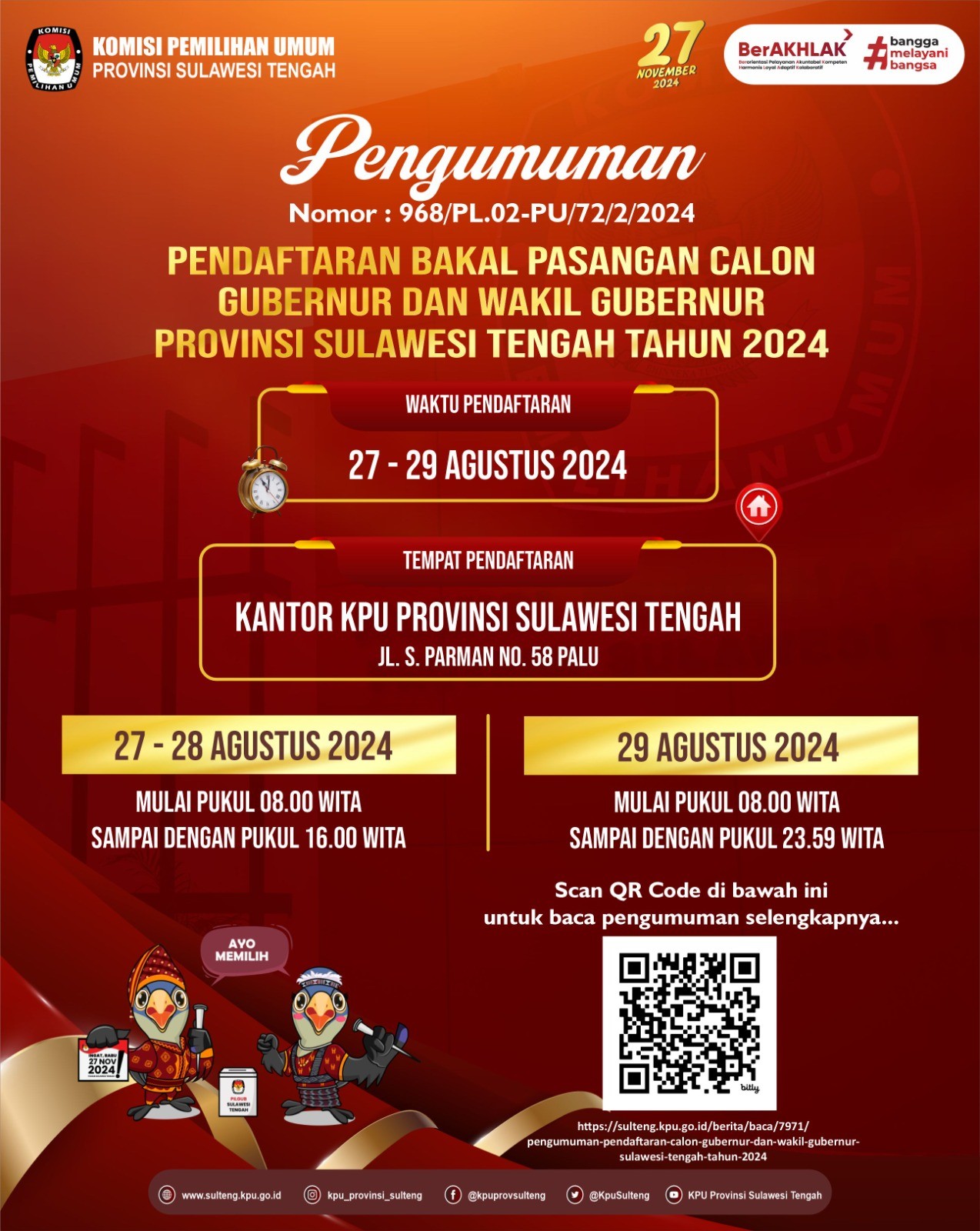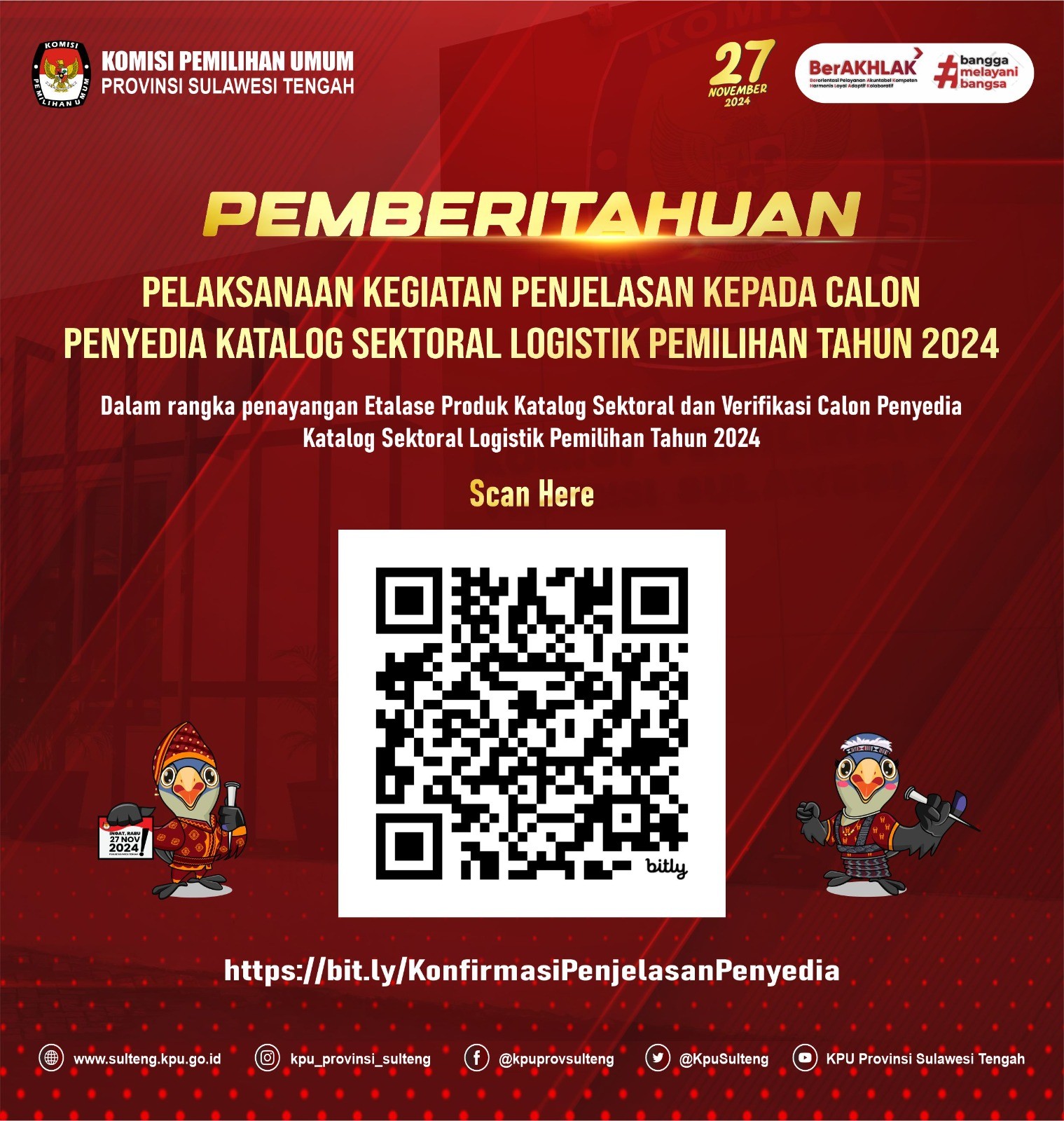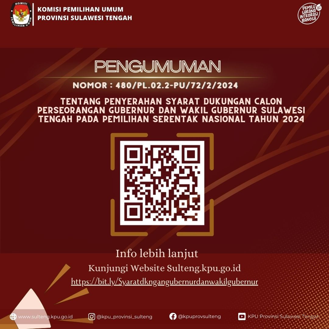 Berikut syarat dan ketentuan sayembara maskot dan jingle Pemilihan Kepala Daerah Provinsi Sulawesi Tengah tahun 2024 download disini yah
