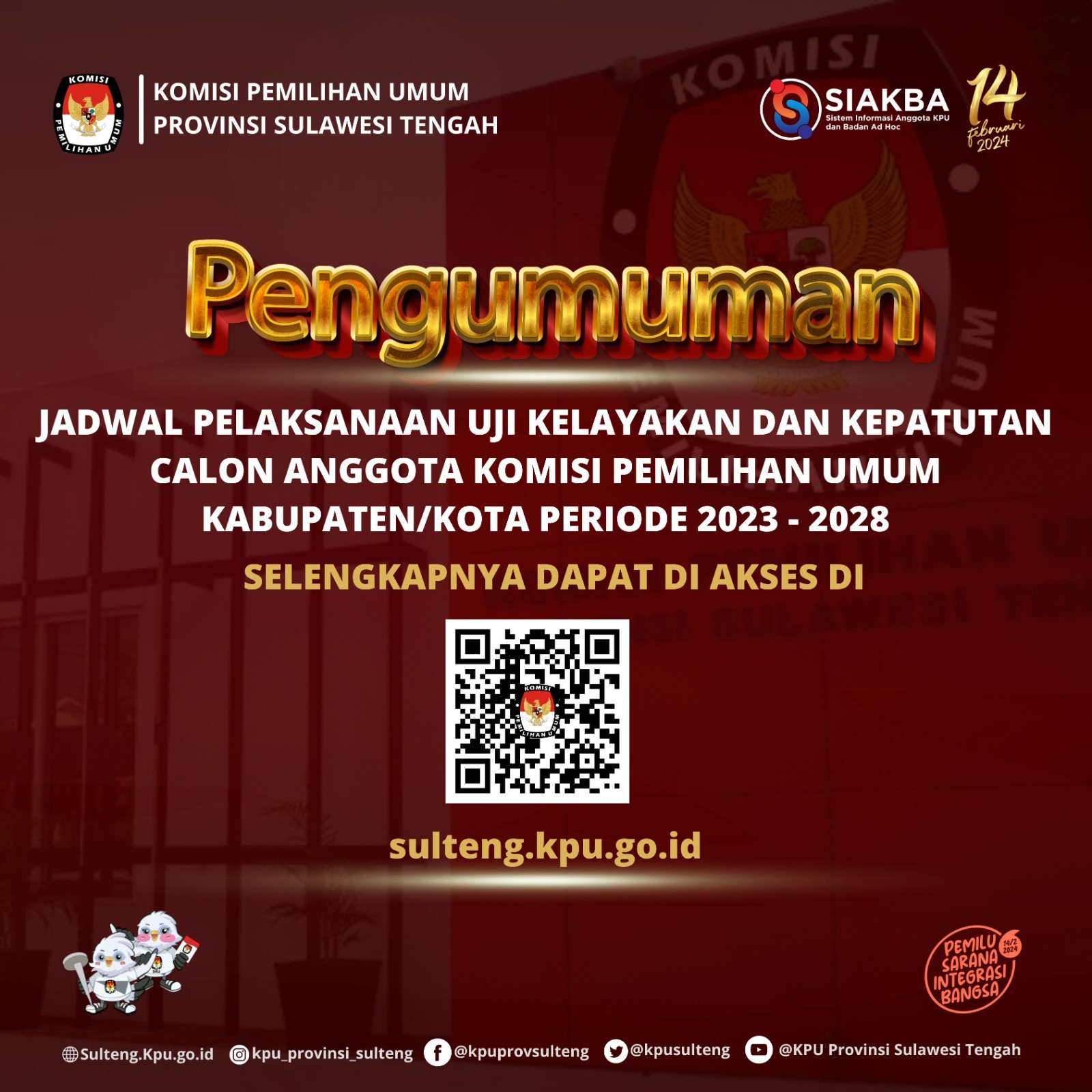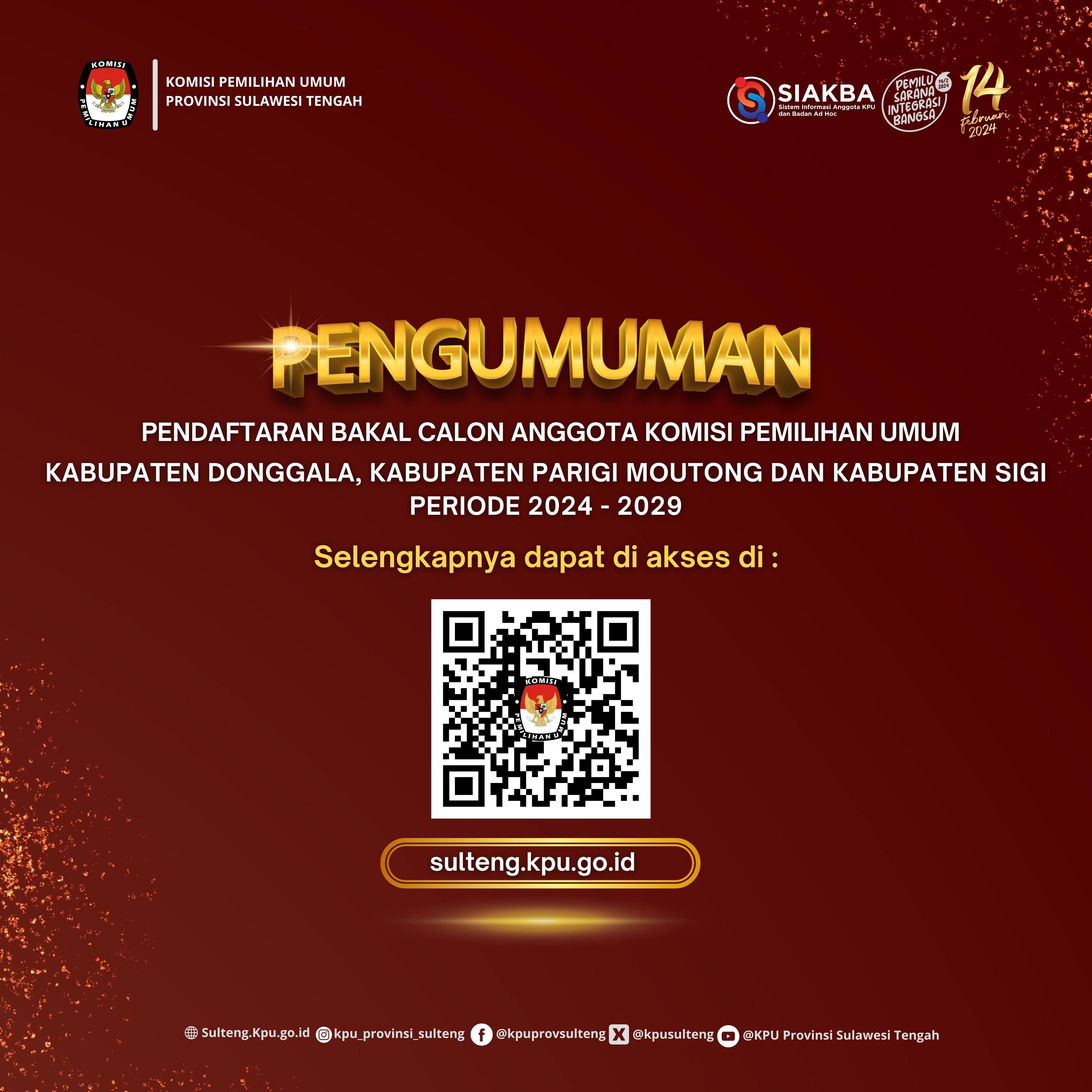 Informasi lebih lanjut dapat menghubungi helpdesk pencalonan KPU Provinsi Sulawesi Tengah.