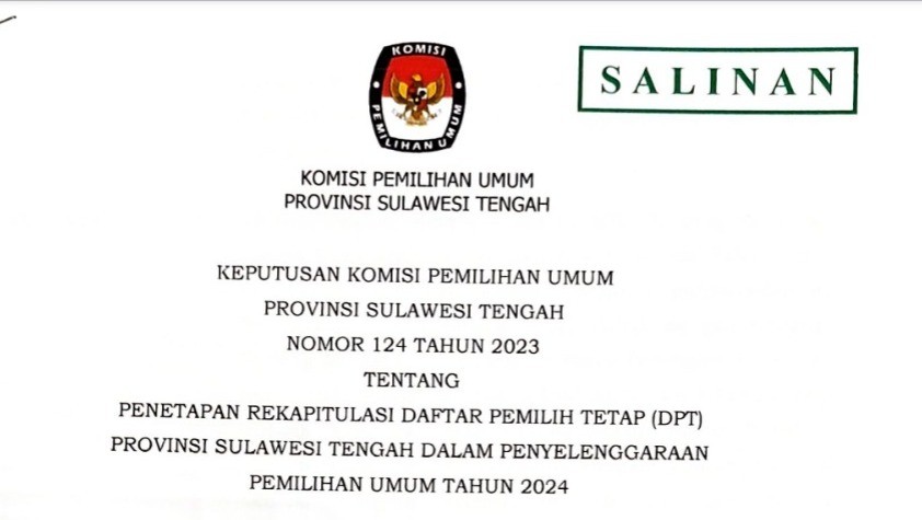 KEPUTUSAN KPU TENTANG DCS DPRD PROVINSI SULAWESI TENGAH