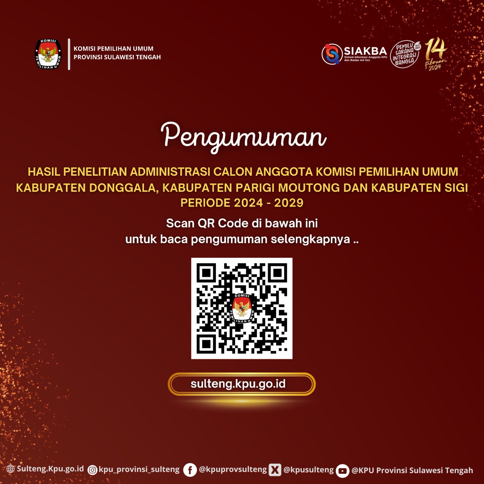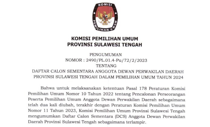 PENGUMUMAN DCS DPRD PROVINSI SULAWESI TENGAH